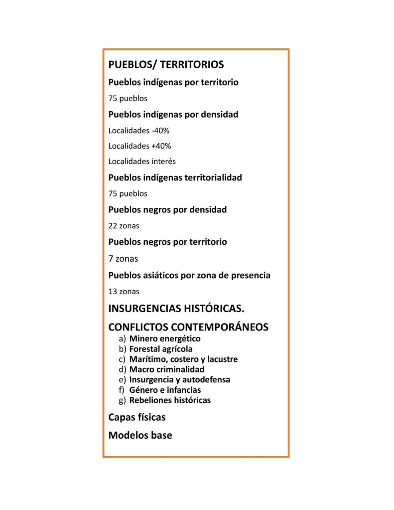 Los pueblos indígenas y afrodescendientes se constituyen así como unidades socio territoriales presentes en comunidades y localidades, cofradías, barrios, cantones, caseríos, rancherías, palenques, mocambos, mimbés, municipios, territorios, municipios y comunidades autónomas o independientes, regiones, naciones y conjuntos binacionales, trinacionales o polinacionales, en periferias urbanas y fronterizas, en zonas costeras y portuarias, de amplia territorialidad y territorio (“nomadismo”, migración, nuevos territorios, asentamientos, campamentos, predios, vecindades, diversidades urbanas y metropolitanas cosmopolitas).