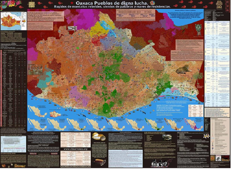 - Cartografía: Oaxaca. Pueblos de digna lucha. Rugidos de montañas rebeldes, vientos de palabras y mares de resistencias.