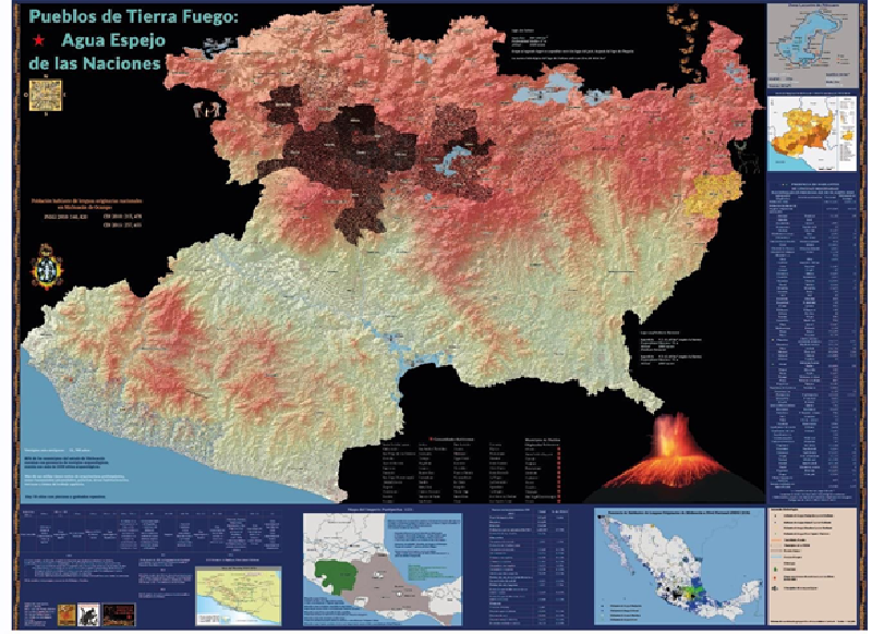 Cartografía de Michoacán y los 4 pueblos originarios, sus lenguas y procesos históricos y culturales. Contiene 13 capas y 18 secciones históricas, políticas, militares, pueblos autónomos, conflictos socioambientales, pueblos Purépecha, Nahua, Mazahua, Hñahñú.