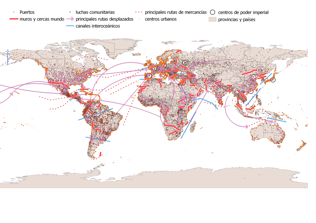 Canales marítimos, FFCC, puertos, aeropuertos, luchas de resistencia, disputas territoriales, luchas de liberación nacional, luchas independentistas, enclaves de recursos, agua, energía, minería, luchas regionales, conflictos internacionales, rutas migratorias planetarias, procesos de autonomía, rutas de navegación, en proceso de elaboración en plataforma digital.