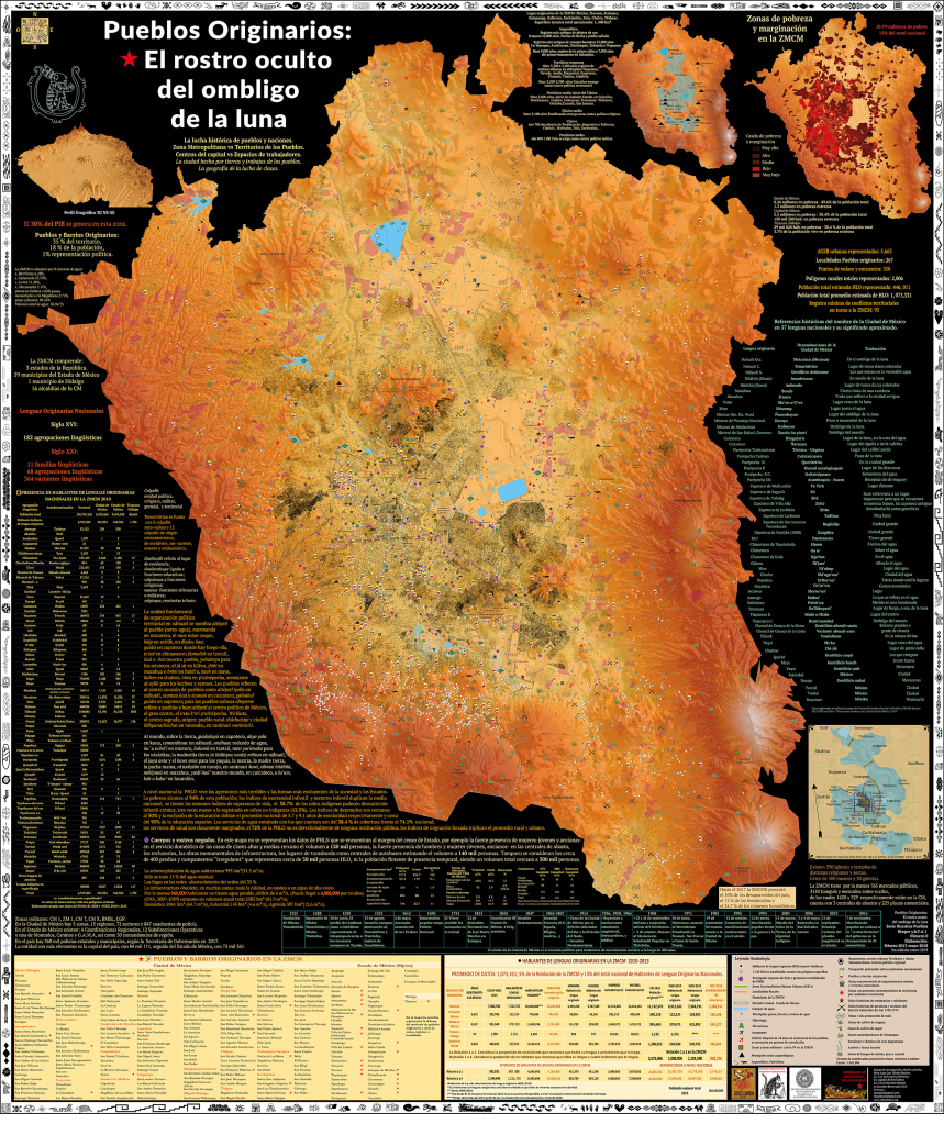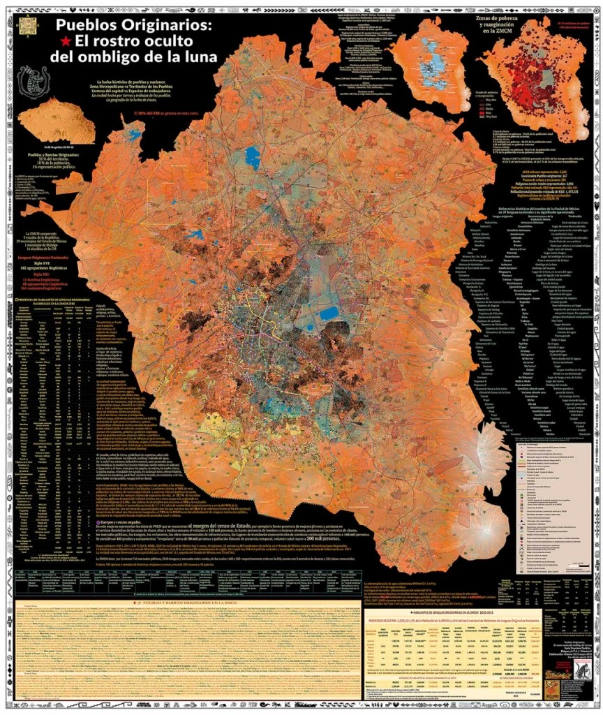 Sitios emblemáticos de las movilizaciones sociales, toponimia de 260 pueblos y localidades, diseño de margen de iconografía originaria, datos y mapas de marginación y pobreza. Toponimia de la ciudad en 59 lenguas originarias.