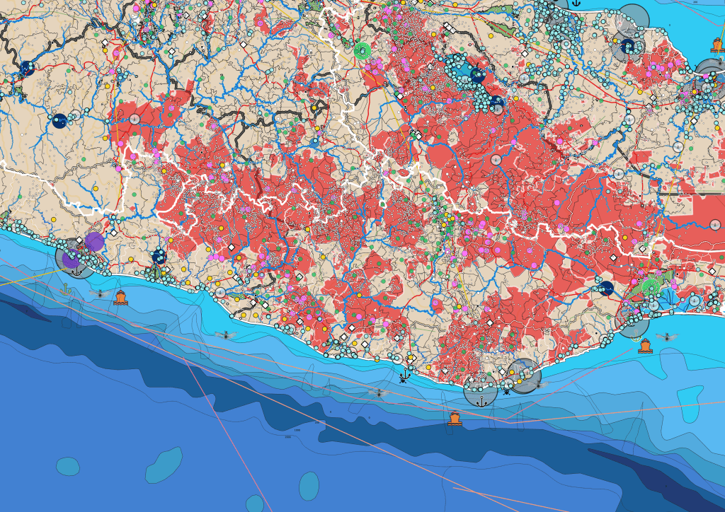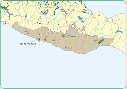 Territorios indígenas y afrodescendientes del sur de México, Oaxaca, localidades por densidad, comunidades de pesca litoral, interior y marítima, puertos y regiones hidrológicas. 2023.