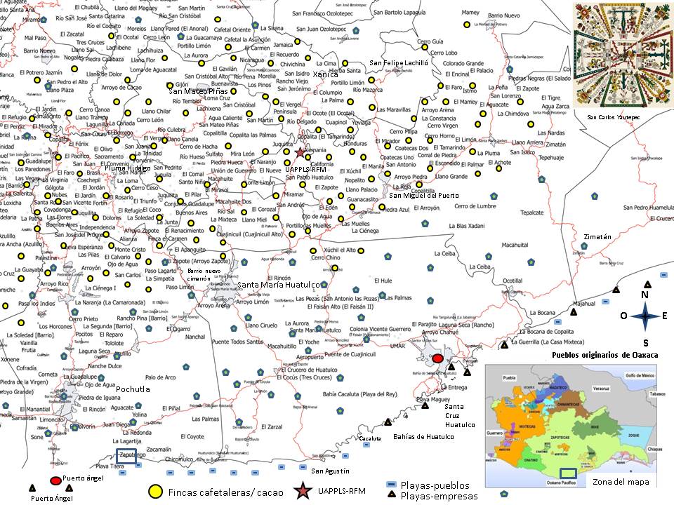 Territorios de la Costa Central, Oaxaca. México. Fincas cafetaleras, cacaoteras, playas y bahías. 2021.