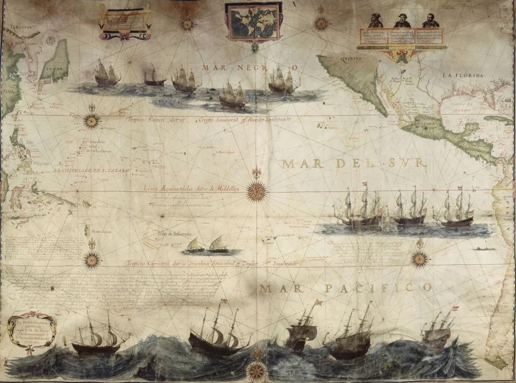 Mar del Sur y Mar del Norte. Siglo XVII, Rutas inter oceánicas América- Asia. ( )